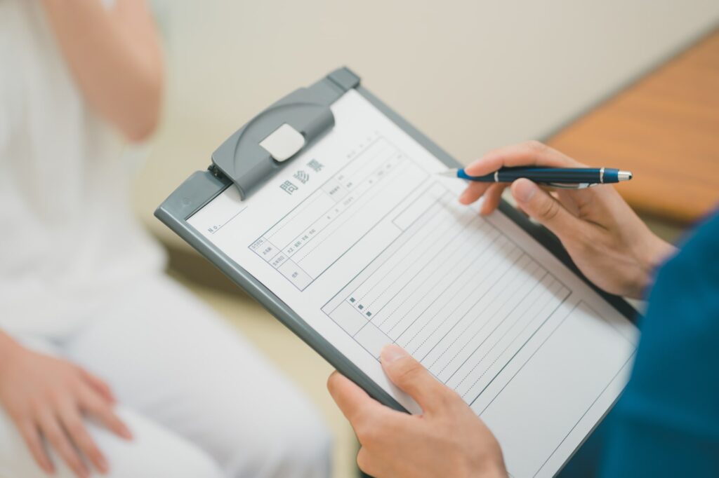 初診の患者様は、2枚の問診票に、記入していただきます。 問診票は、西洋医学的問診と東洋医学的問診に記入していただきます。